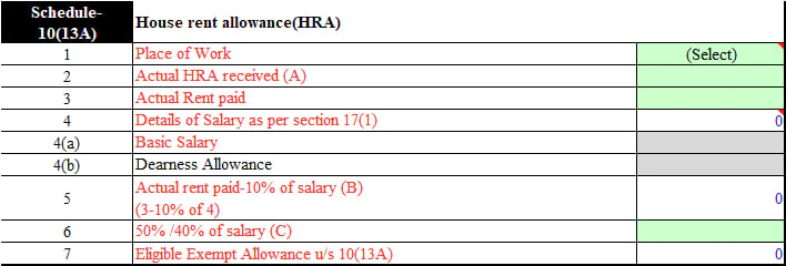 - Incorrect City Selection: The Income Tax Act bases HRA exemption on the taxpayer’s residential city (50% of salary for metro cities, 40% for non-metro cities). The ITR utility’s prompt for “Place of Work” directly contradicts this rule.