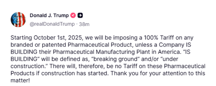 Trump’s most significant announcement is the 100% tariff on branded and patented pharmaceutical products. He stated on Truth Social that this tax will be applied unless companies are “breaking ground” or have their manufacturing plants “under construction” in the United States. This measure is intended to force drug companies to move their production to the U.S. and is part of a broader strategy to protect American jobs and domestic industries. Trump also justified the tariffs on other goods by claiming that foreign producers were “flooding” the U.S. market and “hurting our own producers.”